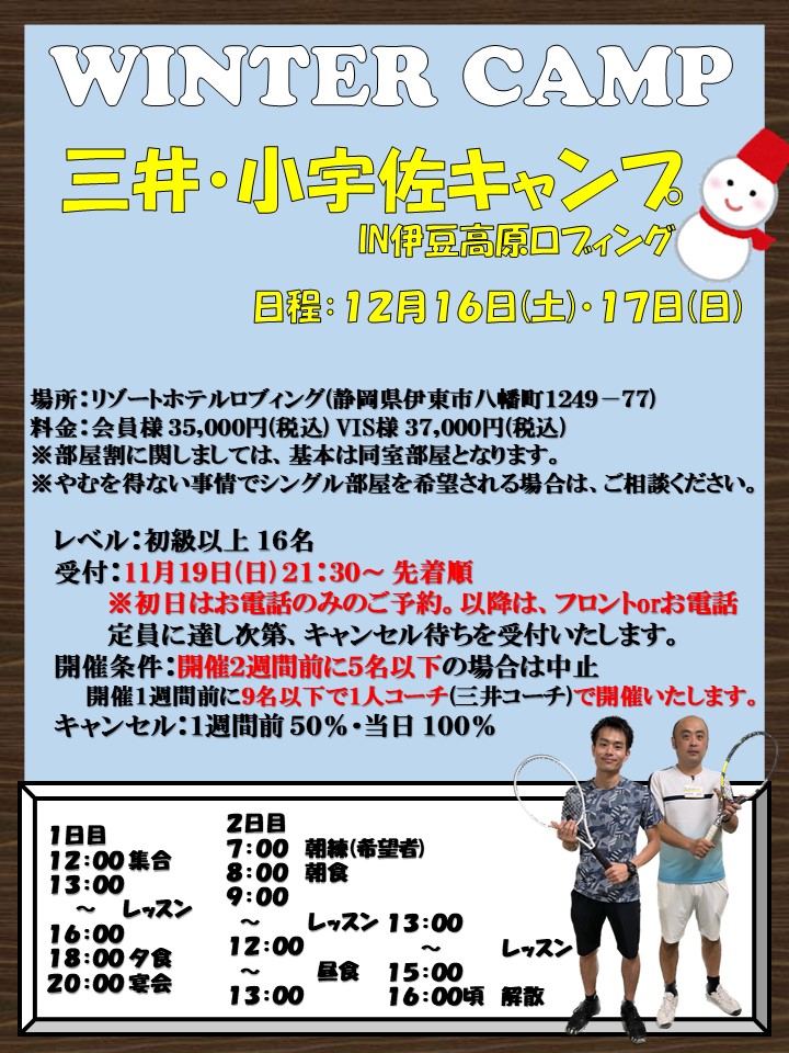 開催1週間前に9名以下の場合、1人コーチ(三井コーチ)で開催いたします。
