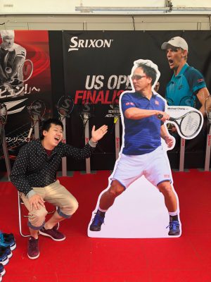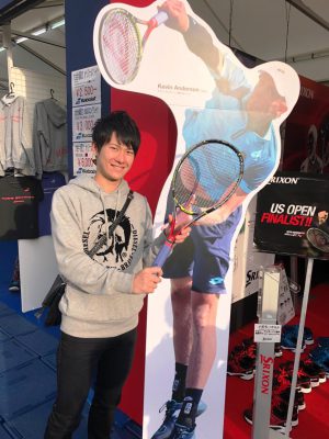 スリクソン契約選手のK.アンダーソンが全米オープン決勝で使用したラケットが展示されていてしかも触ってOK!