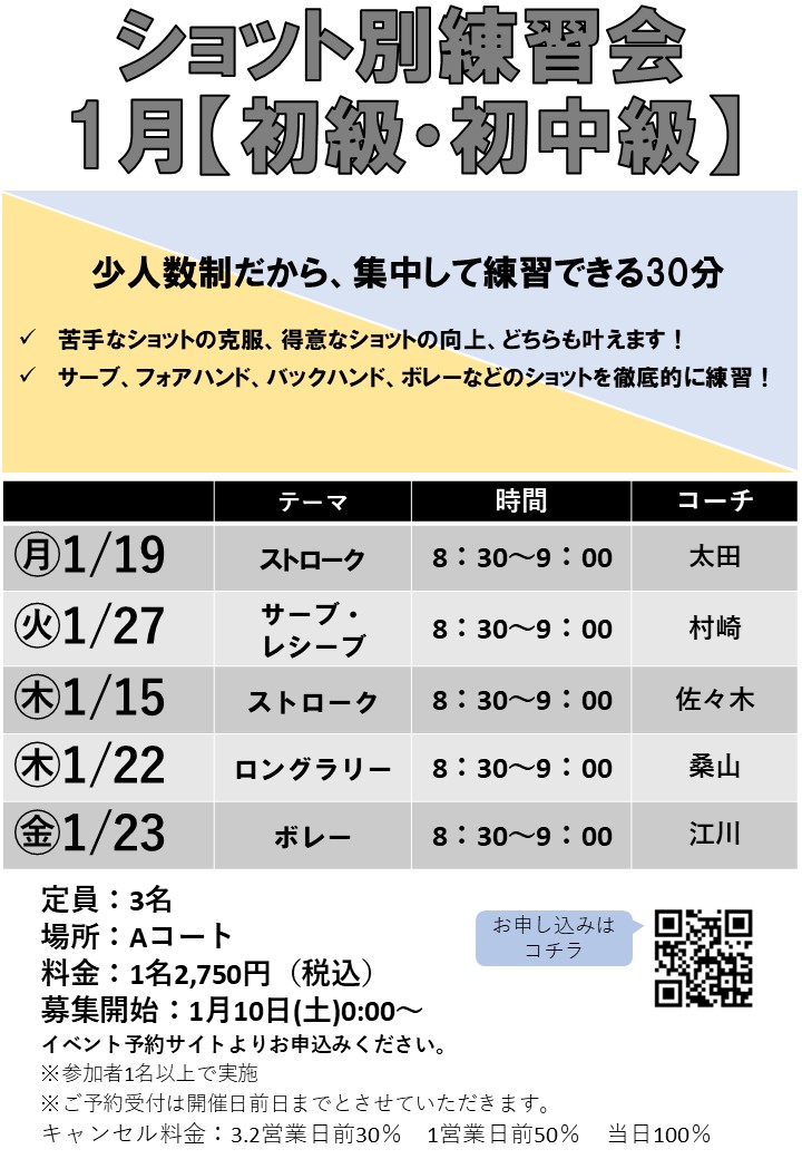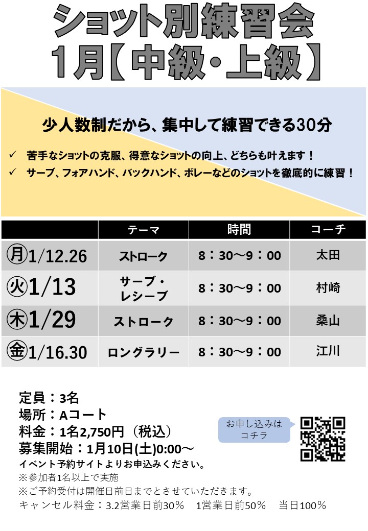 ✅苦手なショットの克服、得意なショットの向上、どちらも叶えます! ✅サーブ、フォアハンド、バックハンド、ボレーなどのショットを徹底的に練習!