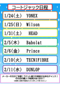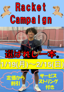 2/15(日)までラケットキャンペーンを開催しております☆