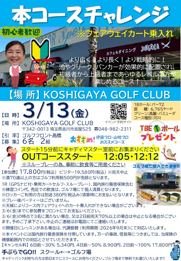 ※フロントスタッフが引率するラウンド練習会のため、レッスンは行いません。あらかじめご了承ください。