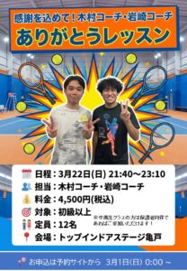 これまでのレッスンや笑顔に感謝を込めて、最後にたくさんラリーを交わしませんか。