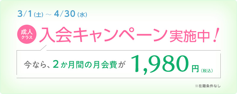 - 体験レッスン当日にご入会いただくと、体験レッスン料は入会時の登録料に充当させていただきます。