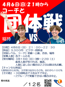🌸4/6(日)稲持・平野コーチと団体戦🌸