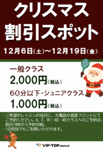 🎄12/6(土)~12/19(金)まで レッスンを受講されると抽選券がもらえます。