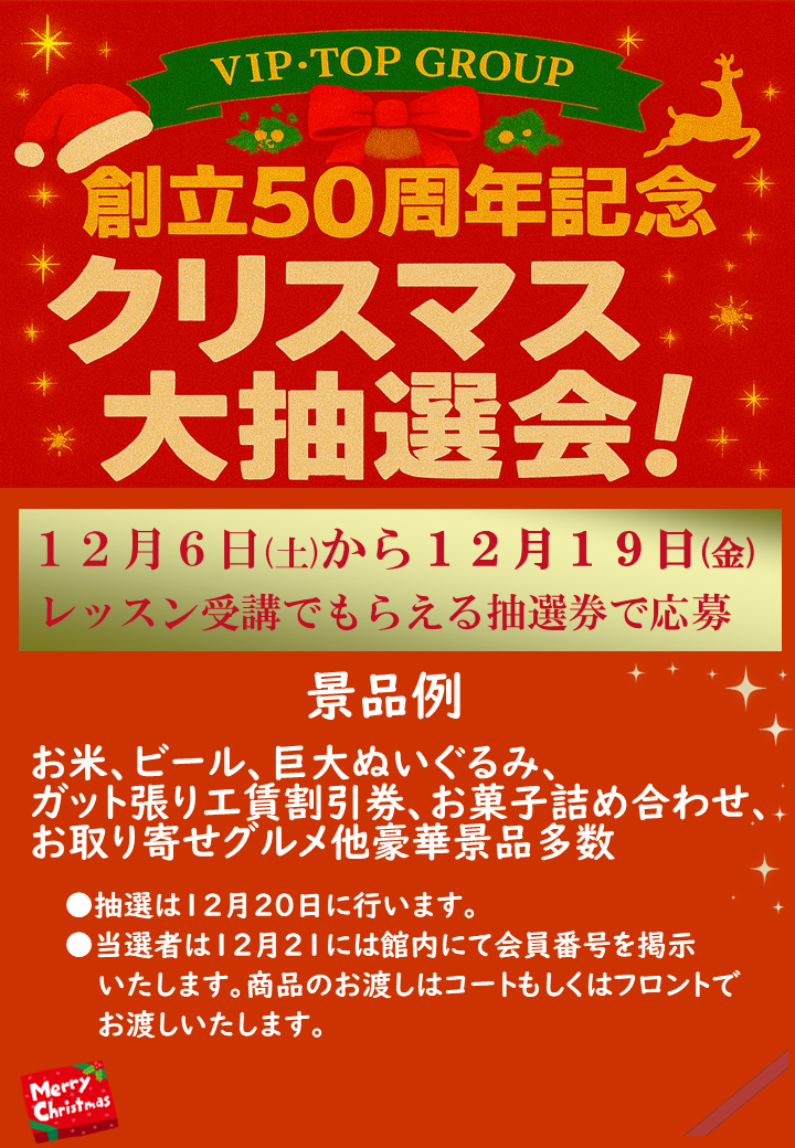 🎄12/6(土)~12/19(金)まで レッスンを受講されると抽選券がもらえます。