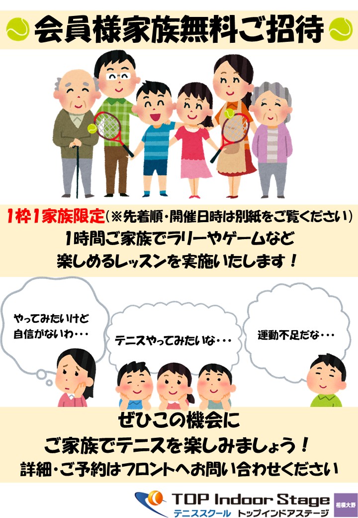この機会にぜひご家族を誘ってテニスを始めませんか?