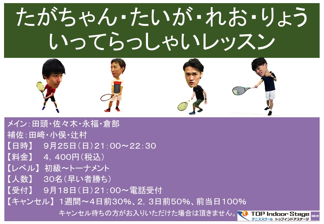 【人数】30名(先着順にて受付。当日レベル分けします。)