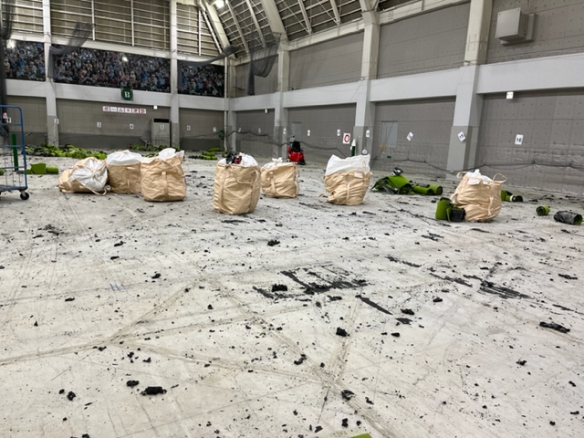 工事2日目の様子です。本日はB・Cコートのカーペットの剝がし作業です。