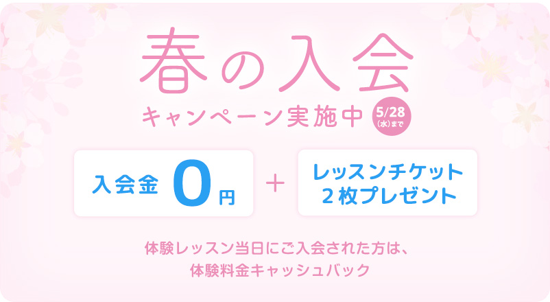 - 体験レッスン受講後、1週間以内にご入会いただくと、体験レッスン料は入会後の月会費に充当させていただきます。