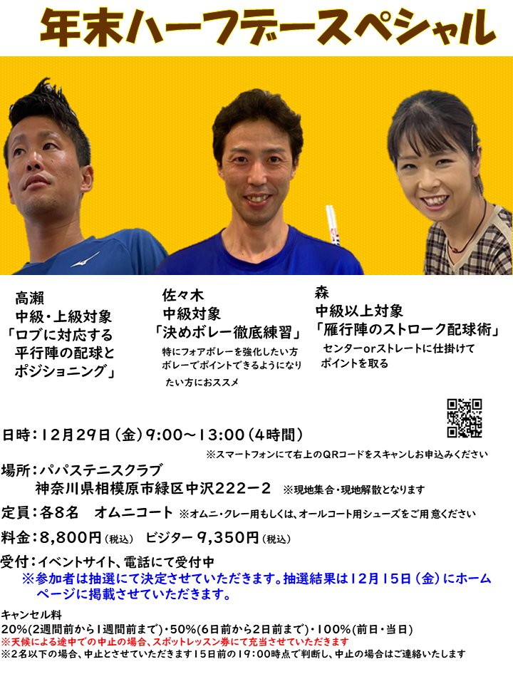 12月29日(金)は外テニスで打ち納をして寒さを吹き飛ばしましょう!