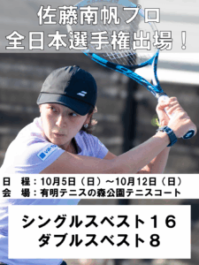 昨日の佐藤南帆プロのダブルスの試合は、6-7(3)、6-7(11)で惜しくも敗退となりました。 両者一歩も譲らない白熱した展開が続きましたが、流れをこちらに引き寄せることができませんでした。 皆様、温かいご声援を誠にありがとうございました。